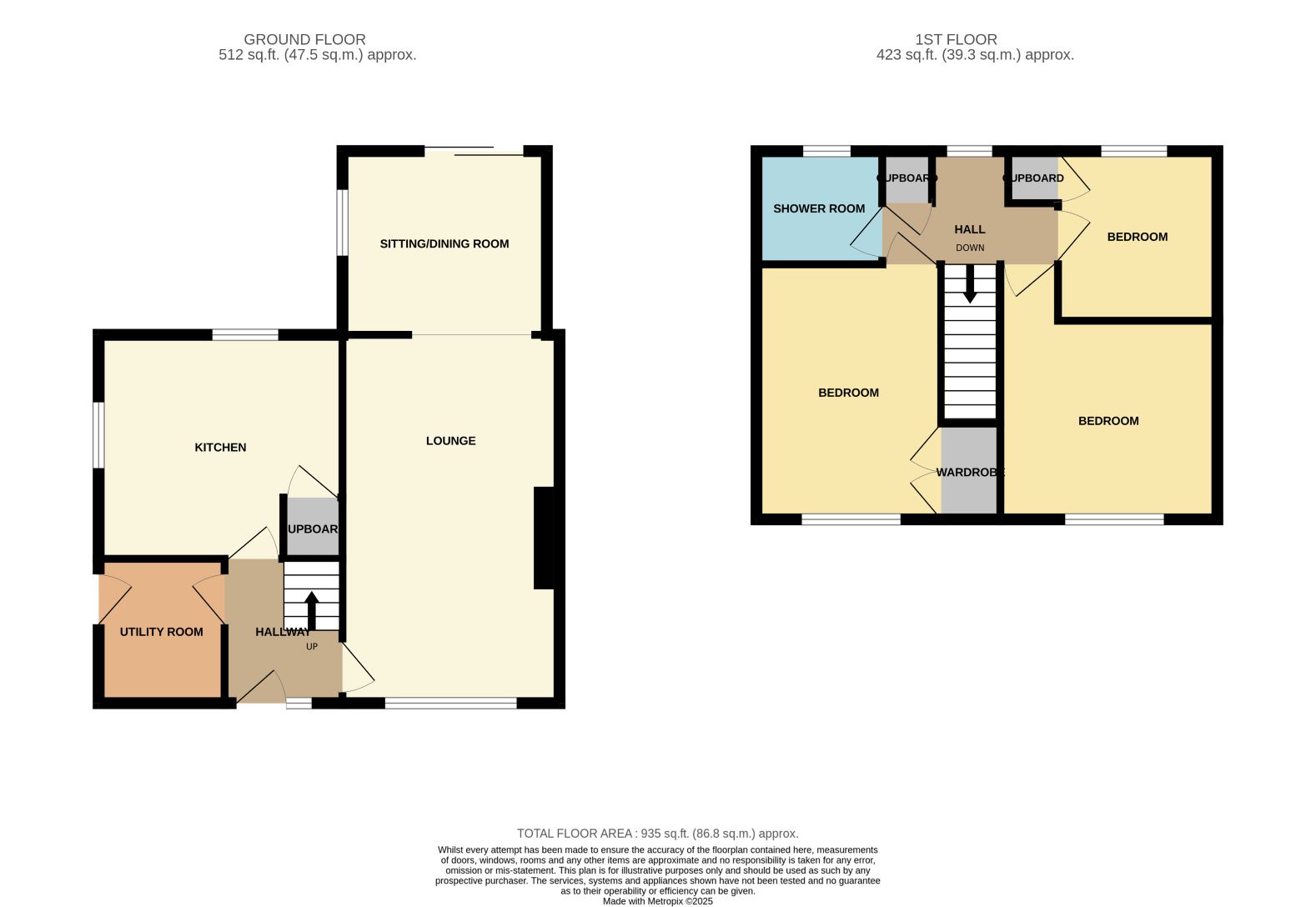 Upstairs, there are two generous double bedrooms and a well-proportioned single bedroom, along with a partly tiled shower room.