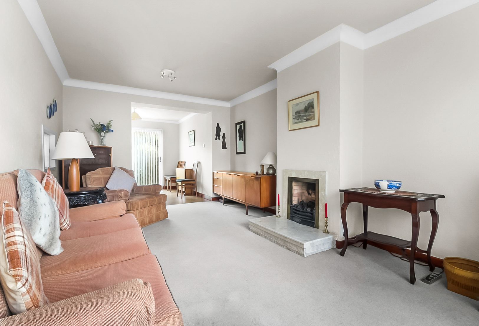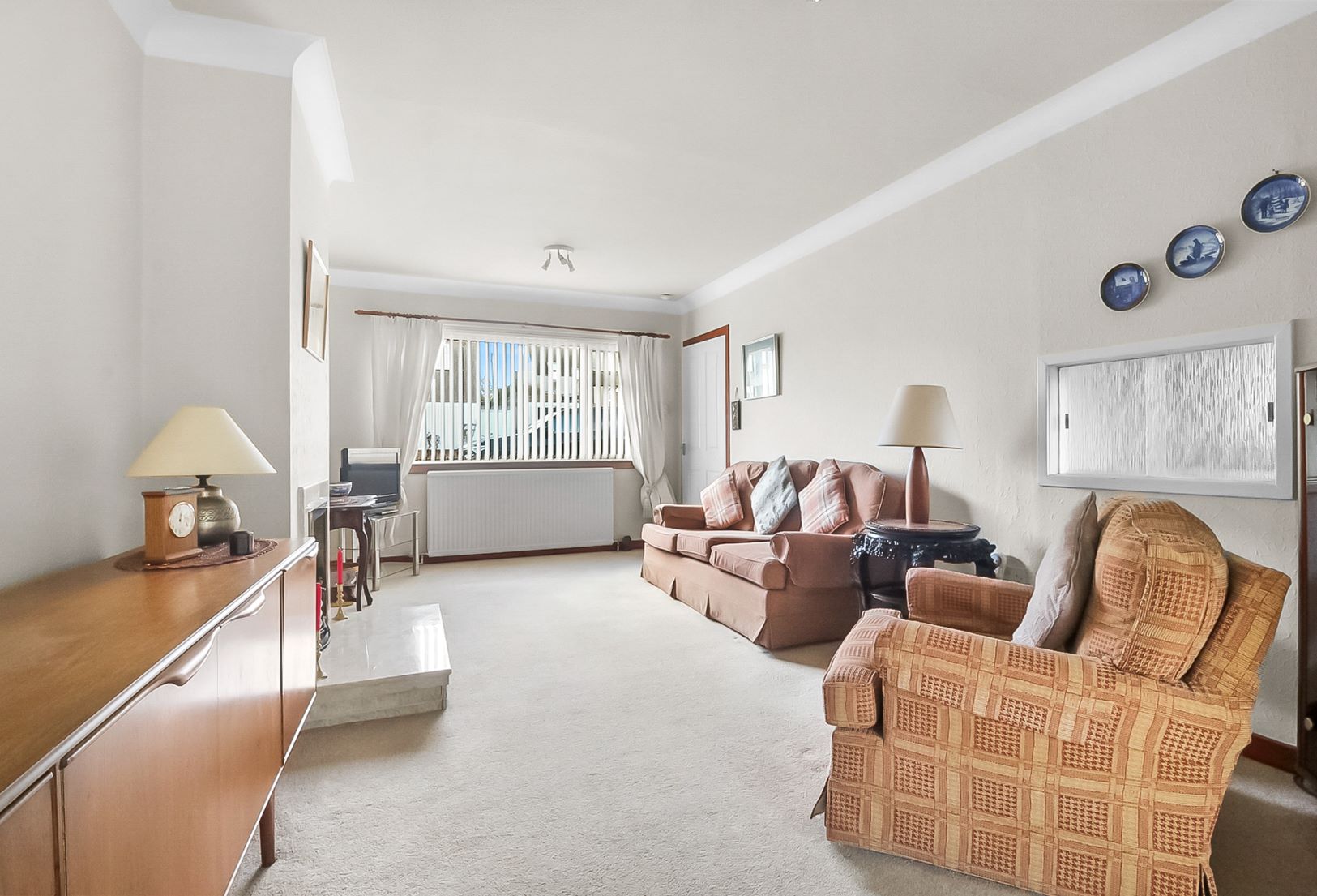 Further features include gas central heating, double glazing, and all floor coverings, carpets, and blinds included in the sale.